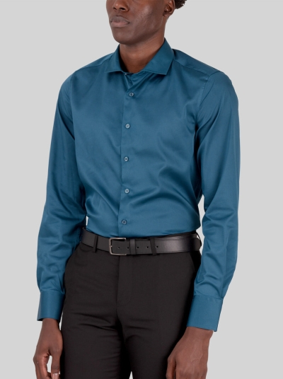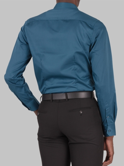 Slim Fit Dress Shirt in Dark Blue Emerald with Stretch